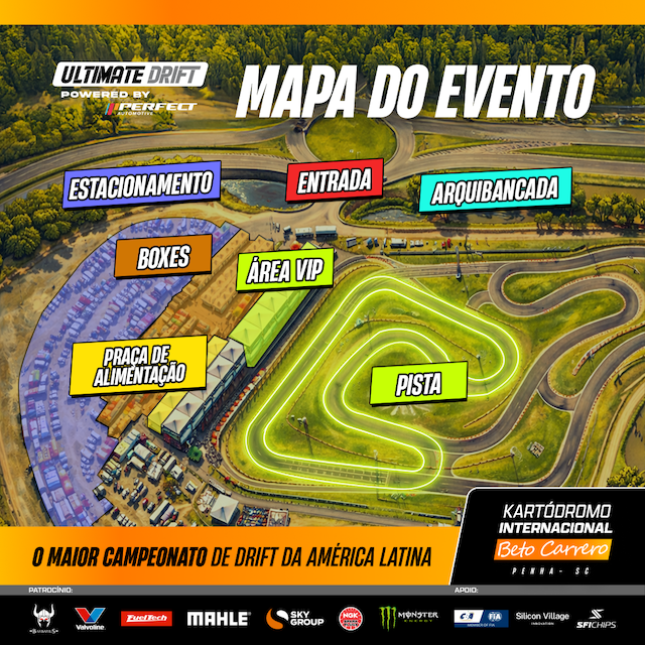 * Baixe antecipadamente o APP Ultimate Drift na Google Play e/ou Apple Store para acompanhar o fluxo do evento em tempo real.